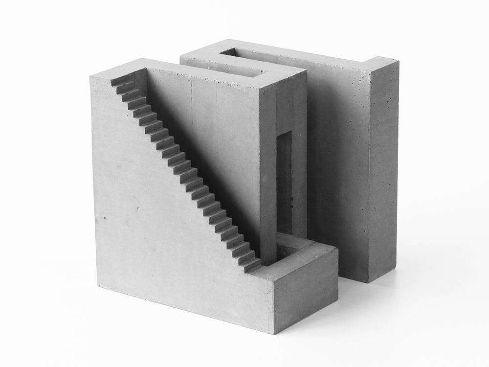 Inspirée par l’architecture brutaliste, cette sculpture de béton a été coulée d’une seule pièce. Elle s’inscrit dans une série d’études sur l’espace et la circulation. Dans ce cas-ci, on se retrouve en circuit fermé dans une boucle infinie. La nature brute et sobre de la matière est mise en valeur par le travail d’assemblage subtil du coffrage, ce qui crée un riche jeu de textures, d’ombres et de lumière.
